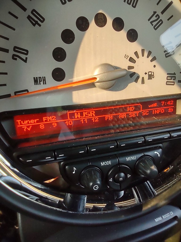 I can listen while I work out, or while I work on mundane tasks. I’ve actually logged less podcast hours since moving to an apartment – no leaves and no walls to paint! While driving to work, I occasionally try to finish a podcast that I started at home in the morning. Because radio has been such an important part of my life, flipping through the stations on the Mini is usually enough to keep me going during short drives. But on long drives, podcasts engage my mind at a deeper level – and keep me awake, and the Mini between the ditches.